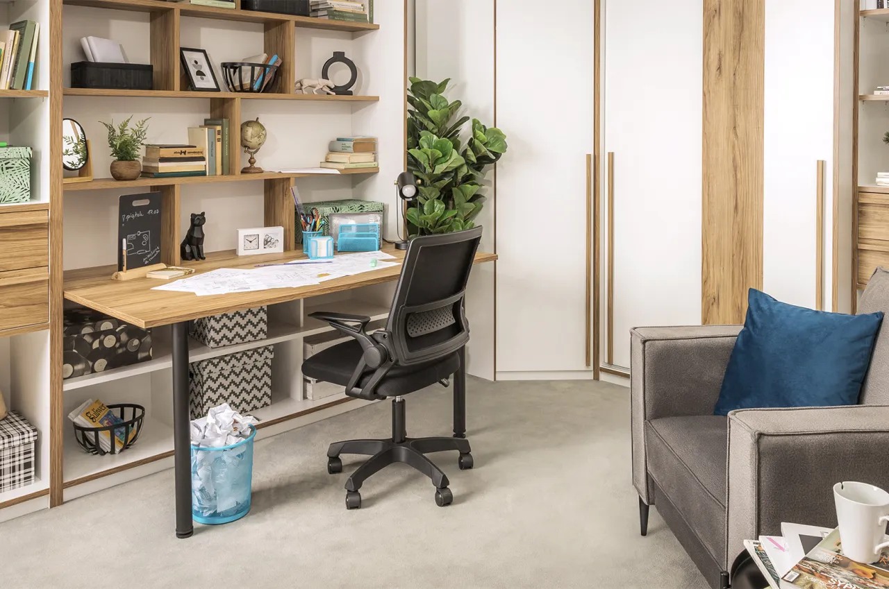 | Skandynawski | Minimalizm, funkcjonalność, jasne kolory | Proste biurko, krzesło z jasnego drewna, białe regały | Biel, jasne drewno, szarości |