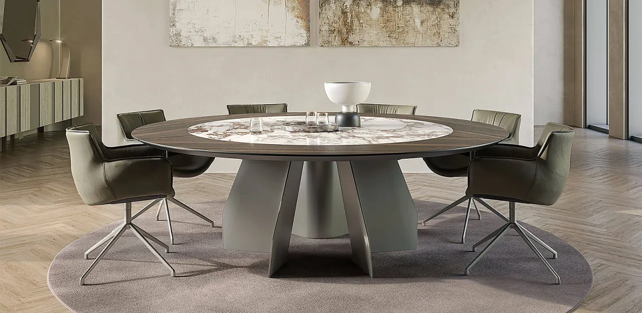- Okrągłe stoły są popularnym wyborem w nowoczesnych aranżacjach